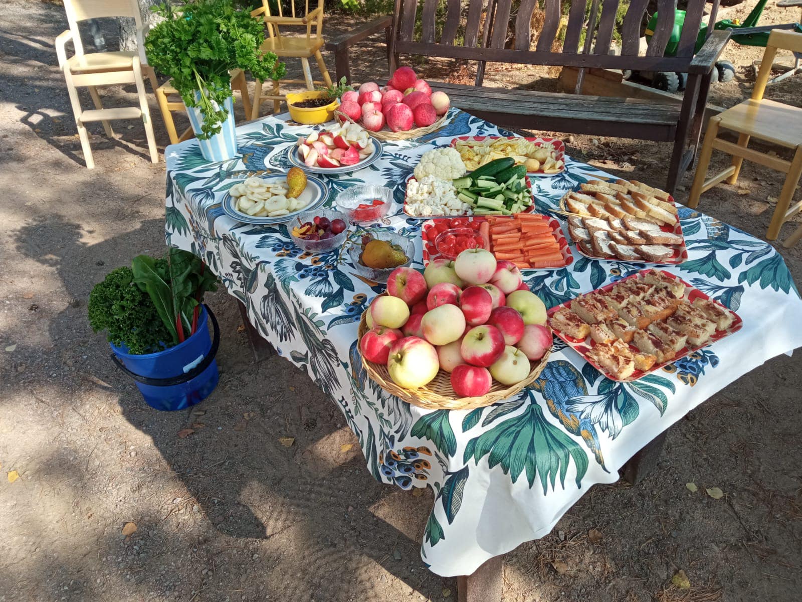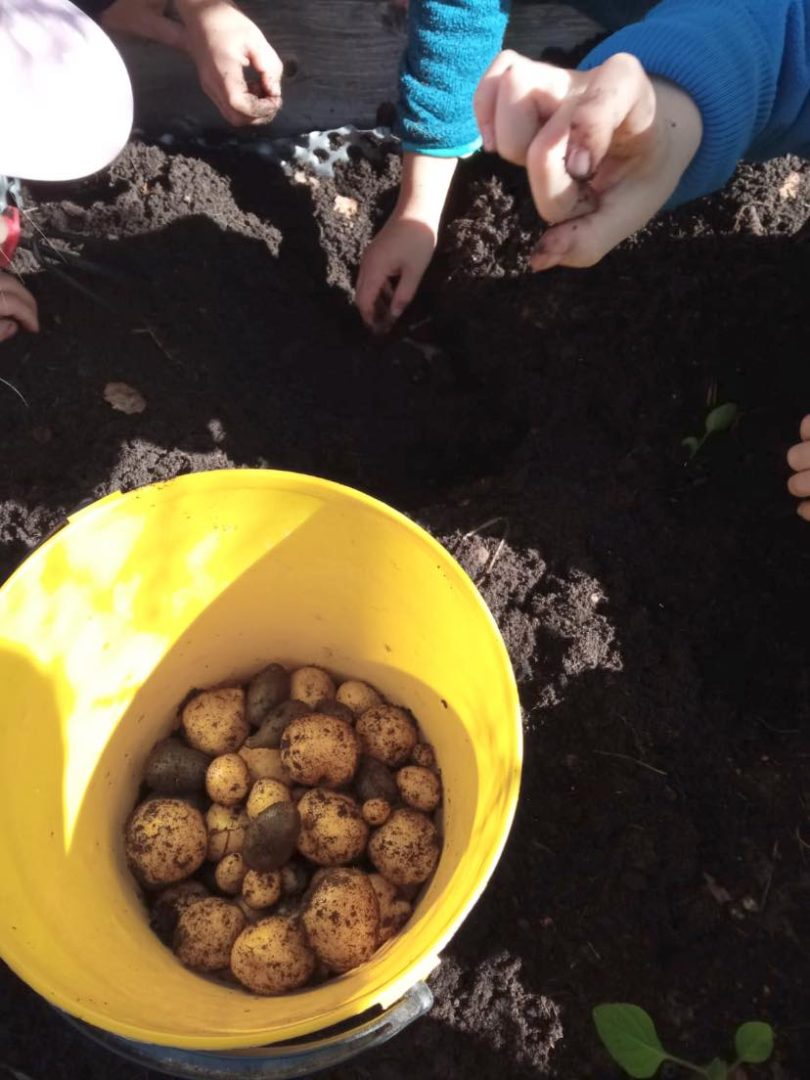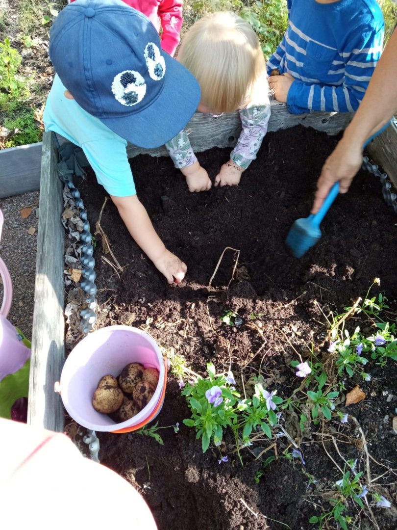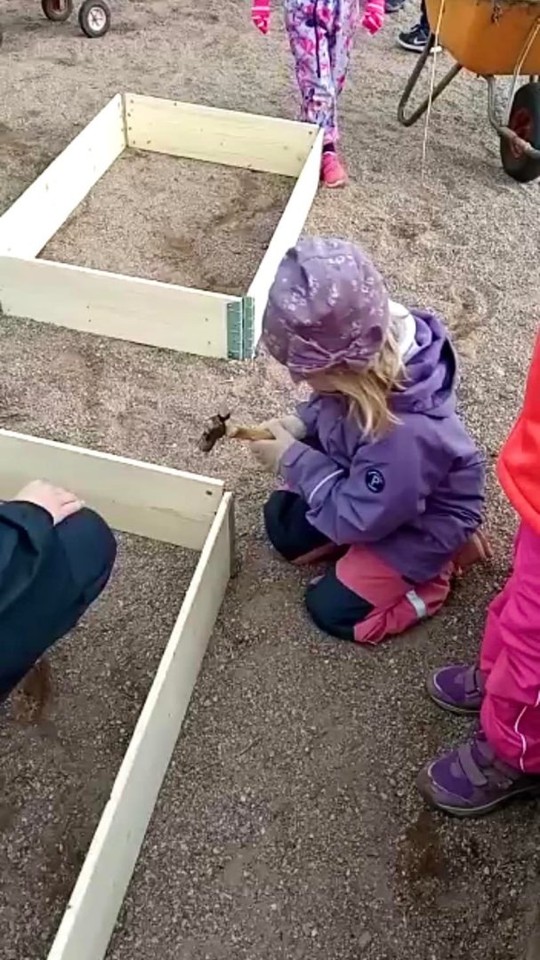 Vi har 2 odlingslådor på gården där vi odlar blommor och grönsaker. Vi oldar också en del inomhus, speciellt på våren.