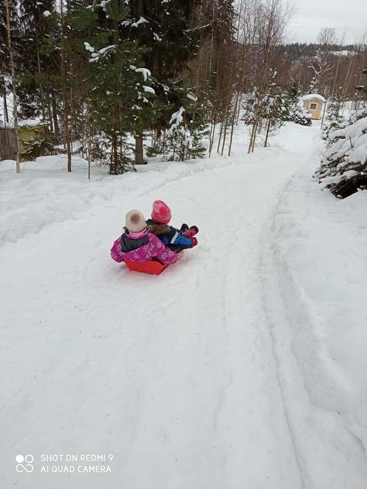 Våra ängar är perfekta för en skidtur då vädret tillåter. Det finns många bra backar där vi kan åka pulka.